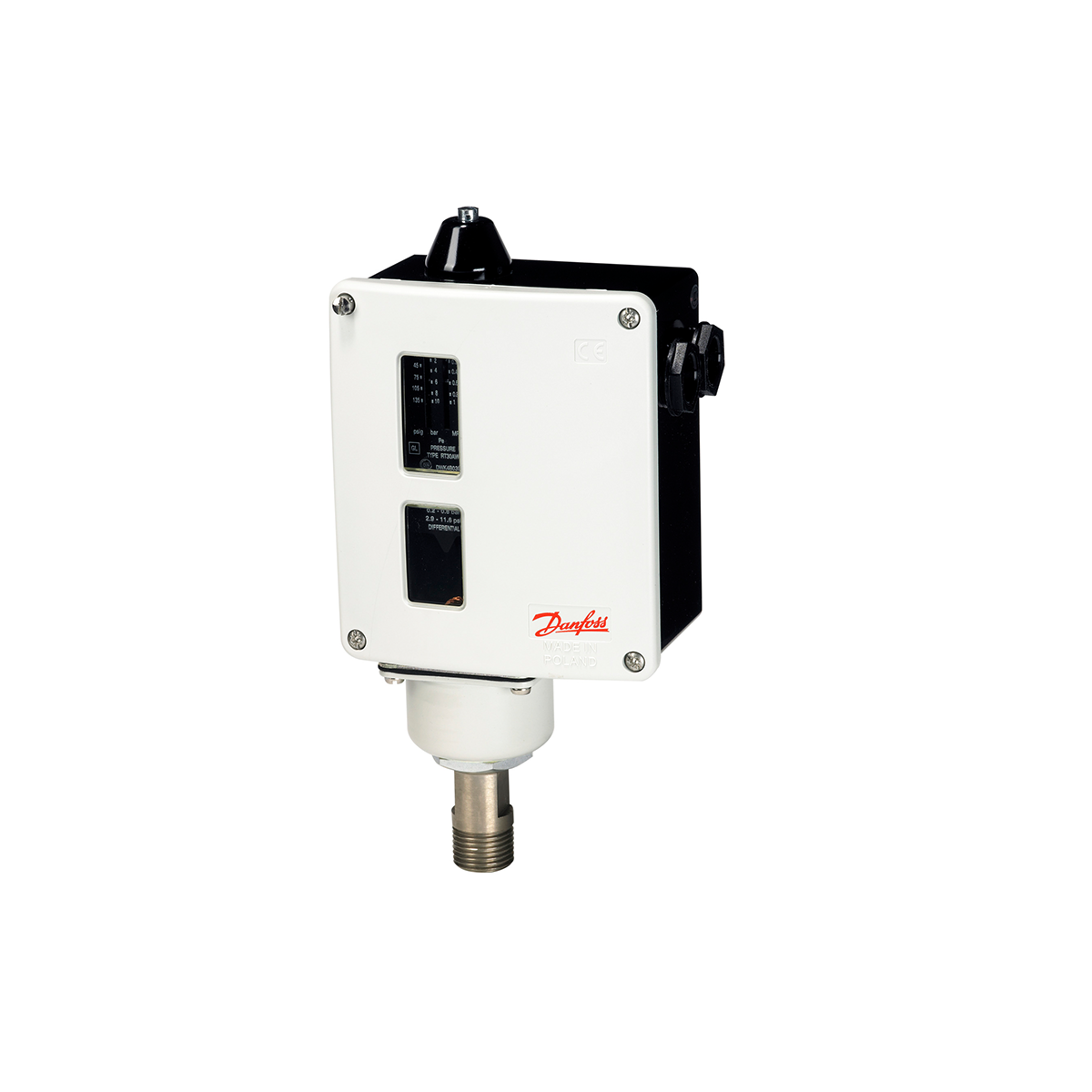 The Danfoss 017-519366 is a RT112 series Pressure Switch. This is a robust switch designed for general industrial and marine applications, particularly where a manual reset is required.